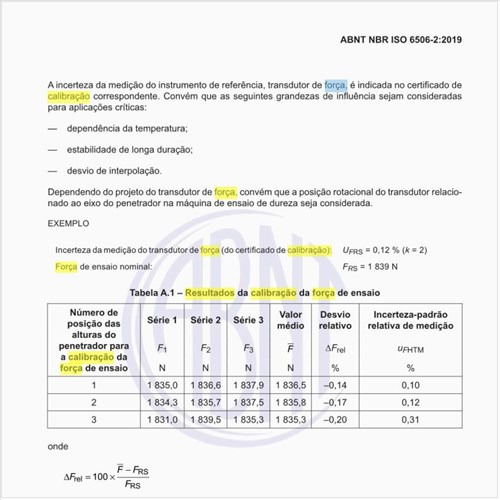 Resposta conforme a norma NBRISO6506-2 de 01/2019