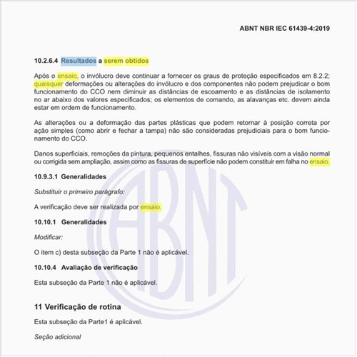 Resposta conforme a norma NBRIEC61439-4 de 03/2019