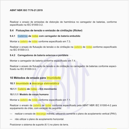 Sobre "Cadeiras de rodas - Parte 21: Requisitos e métodos de ensaio para compatibilidade eletromagnética de cadeiras de rodas motorizadas e scooters e carregadores de baterias"