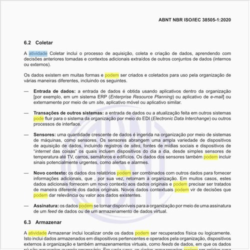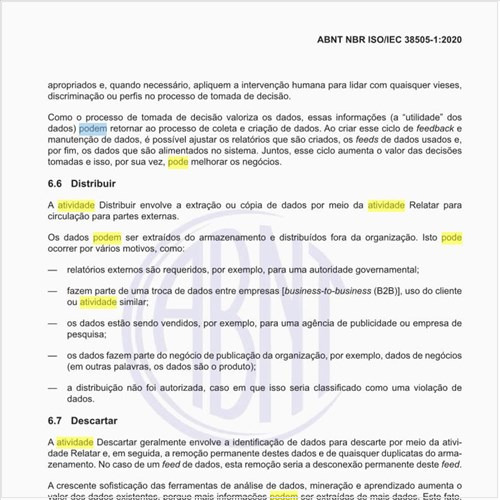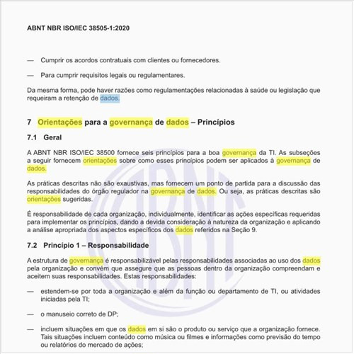 Resposta conforme a norma NBRISO/IEC38505-1 de 01/2020