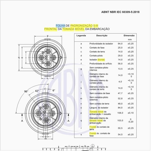 Sobre "Plugues e tomadas para uso industrial - Parte 5: Requisitos dimensionais de compatibilidade e de intercambiabilidade para plugues, tomadas, tomadas móveis e plugue fixo da embarcação em sistemas de baixa tensão para a conexão de embarcações atracadas (LVS"