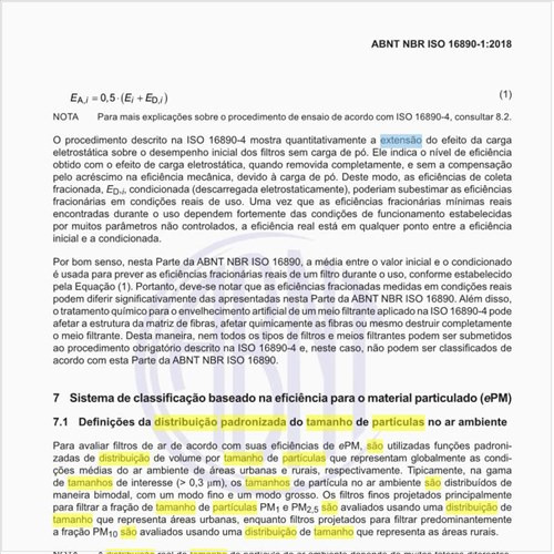 Sobre "Filtros de ar para ventilação em geral - Parte 1: Especificações técnicas, requisitos e sistema de classificação baseado na eficiência do material particulado (ePM)"