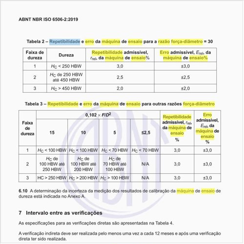 Resposta conforme a norma NBRISO6506-2 de 01/2019