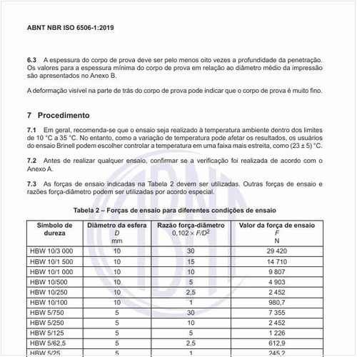 Resposta conforme a norma NBRISO6506-1 de 01/2019