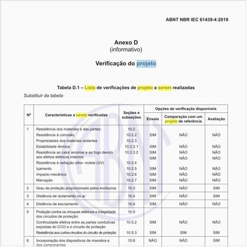 Resposta conforme a norma NBRIEC61439-4 de 03/2019