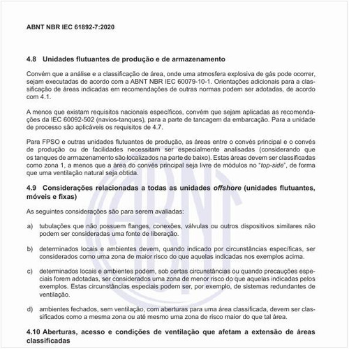 Sobre "Unidades marítimas fixas e móveis - Instalações elétricas - Parte 7: Áreas classificadas"