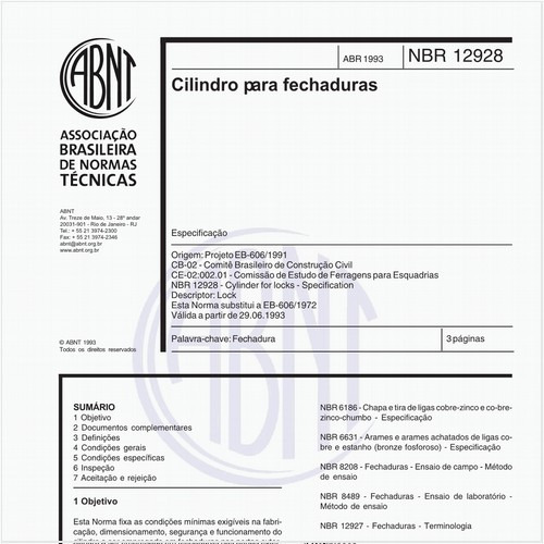 Esta Norma especifica as características do veículo coletor compactador de resíduos sólidos e seus dispositivos de elevação de contentores (DEC) para carregamento traseiro e suas condições operacionais. This Standard specifies the characteristics of th...