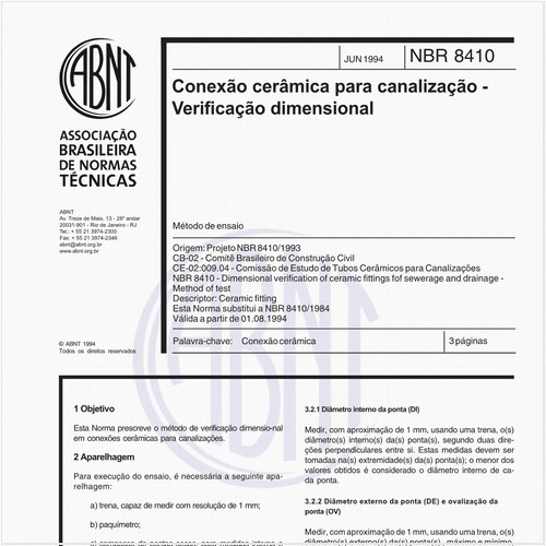 Esta Norma estabelece os requisitos mínimos exigíveis para conectores montados em mídias ópticas e adaptadores, apropriados para utilização em ambiente interno não agressivo ou ambiente externo não agressivo, devidamente protegido contra intempéries, p...