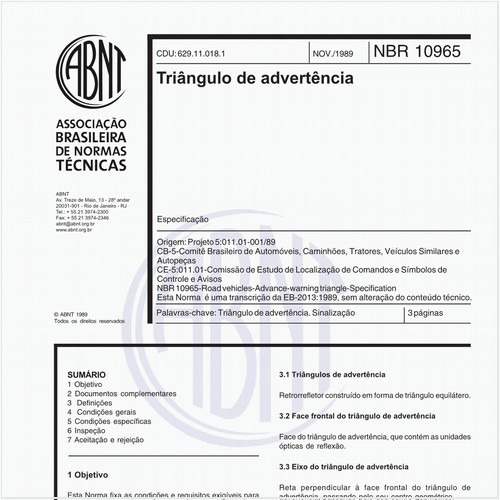 Esta Norma estabelece o conjunto mínimo de equipamentos para situações de emergências no transporte terrestre de produtos perigosos, constituído por equipamento de proteção individual (EPI), a ser utilizado pelo condutor e pelos auxiliares envolvidos (...