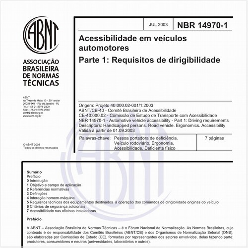 Esta Norma especifica os requisitos, métodos de ensaios, marcação, manual de instruções e embalagem para absorvedor de energia. This Standard specifies the requirements, test methods, marking, Instruction Manual and packing for energy absorber. ISBN: ...