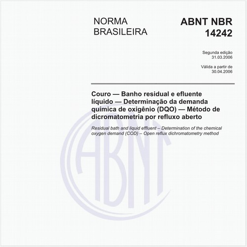 Esta Norma estabelece o método para determinação da demanda química de oxigênio (DQO) através da dicromatometria por refluxo aberto em banho residuais e efluentes líquidos de couro.