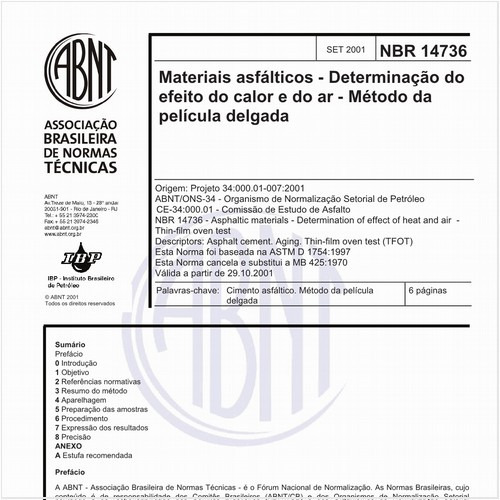Esta Norma estabelece o método para a determinação do efeito do calor e do ar sobre uma película de materiais asfálticos semi-sólidos.