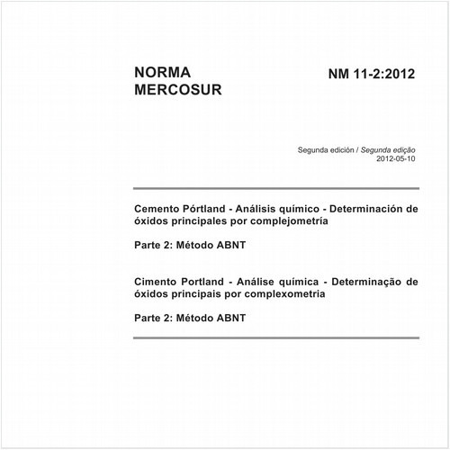 Esta Norma MERCOSUL prescreve o método de análise química de cimento Portland, porcomplexometria, para determinação de Fe2O3, AI2O3, CaO e MgO, após determinação de SiO2.