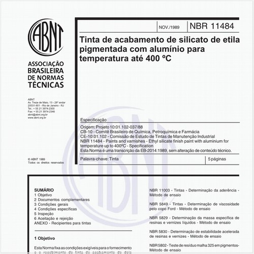 Esta Norma especifica o método de ensaio de pressão em conjunto de emenda para cabos ópticos (aéreo e subterrâneo). This Standard specifies the test method of pressure on splice closure for optical cables (aerial and underground). ISBN: 978-85-07-05619-5