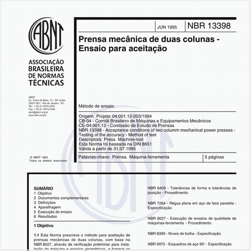 Esta Norma especifica o método para determinação da resistência à corrosão, por exposição à névoa salina acética. This Standard especifies the method for corrosion resistance determination, by acetic salt spray exposition. ISBN: 978-65-5659-298-5