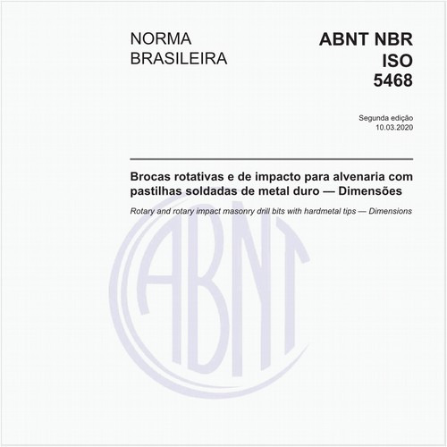 Este Documento especifica as dimensões, em milímetros, de brocas rotativas e de impacto para alvenaria com pastilhas soldadas de metal duro, com diâmetros na faixa de 4 mm a 25 mm, inclusive com comprimentos total e de trabalho nas séries curta, longa ...