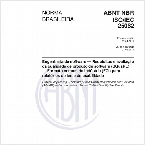Esta Norma destina-se à elaboração de relatório das medidas obtidas em um teste de usabilidade, conforme definidas na ISO 9241-11: eficácia, eficiência e satisfação em um contexto de uso especificado.