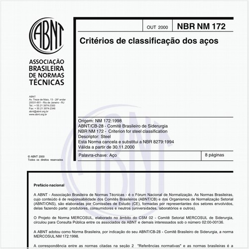 Esta Norma estabelece os requisitos para fabricação, dimensionamento, segurança, funcionamento e acabamento superficial de ferragens para vidro utilizadas principalmente para o fechamento ou a separação de áreas e ambientes internos ou externos. This S...