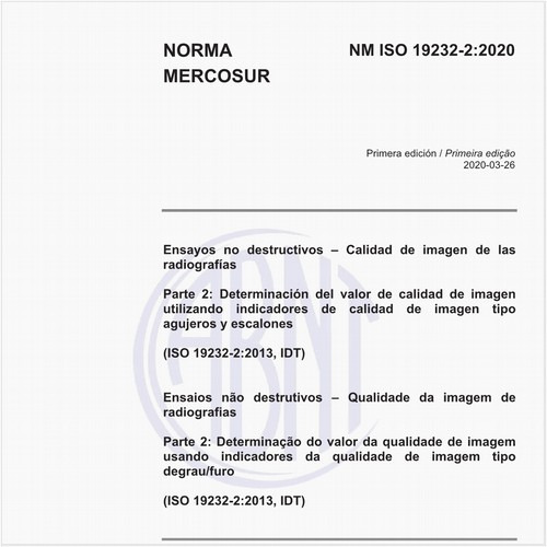 Esta parte de la Norma MERCOSUR NM ISO 19232 especifica un dispositivo y un método para la determinación del valor de calidad de imagen de las radiografías usando indicadores de calidad de imagen tipo agujeros y escalones.