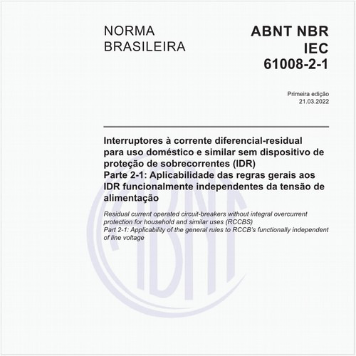 Esta Parte da ABNT NBR IEC 61008 é aplicável aos IDR funcionalmente independentes da tensão de alimentação, para uso doméstico e análogo, sem dispositivo de proteção contra as sobrecorrentes incorporado, com tensão nominal não superior a 440 V em corre...