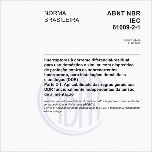 Esta Parte da NBRIEC61009 é aplicável aos DDR funcionalmente independentes da tensão de alimentação, para uso doméstico e análogo, com dispositivo de proteção contra as sobrecorrentes incorporado, com tensão nominal não superior a 440 V em corrente alt...