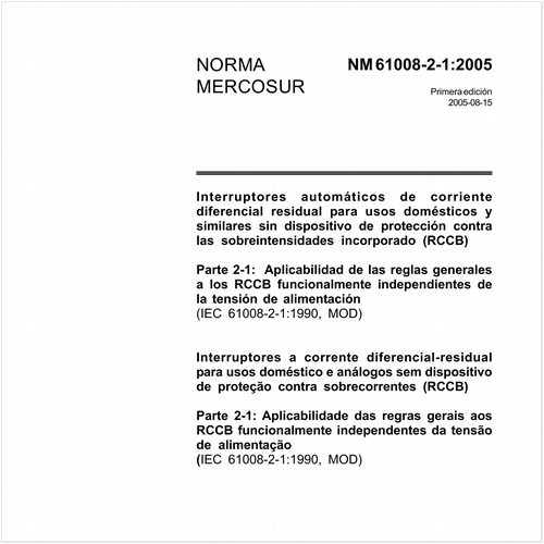 Completa ou modifica as seções correspondentes da NM 61008-1 para abranger a aplicabilidade das regras gerais aos RCCB funcionalmente independentes da tensão de alimentação.