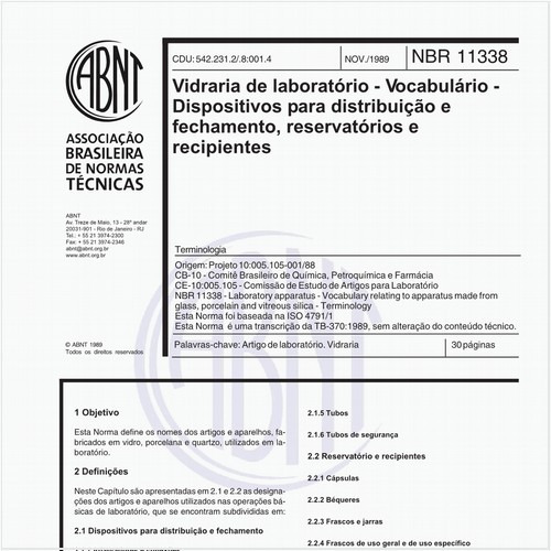 Esta Norma define os nomes dos artigos e aparelhos, fabricados em vidro, porcelana e quartzo, utilizados em laboratório.