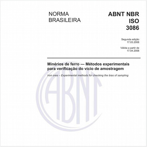 Esta Norma especifica os métodos para verificação do vício de amostragem de minérios de ferro quando a amostragem é executada de acordo com os métodos especificados na ABNT NBR ISO 3082, tendo como referência o método de amostragem de correia parada.