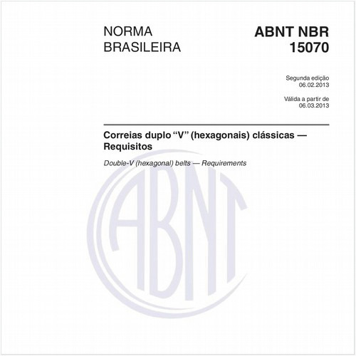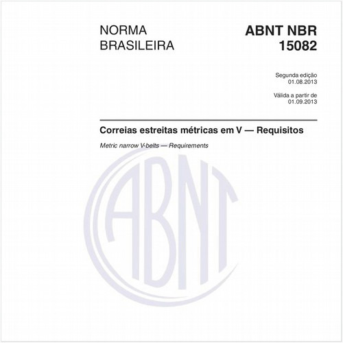 Esta Norma padroniza as características principais das correias em "V" industriais, sem fim, estreitas, para transmissão de potência em polias (ranhuradas), com canais para as seções transversais 3V, 5V, 8V, sobre eixos operando vertical, horizontal ou...