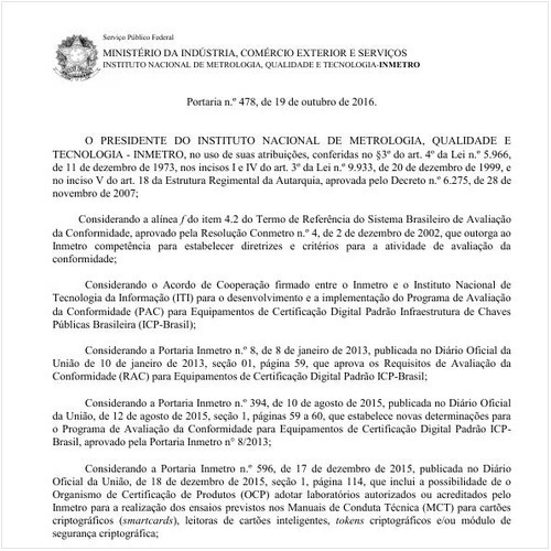 Portaria INMETRO/MDIC 478:2016 - Situação: Revogado