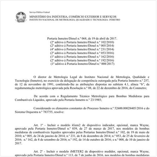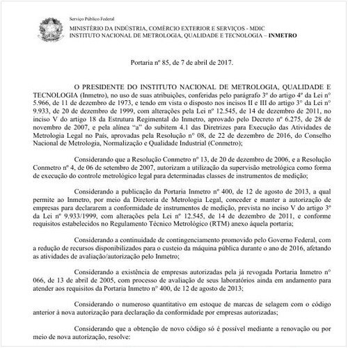 Portaria DIMEL/INMETRO 68:2017 - Situação: Em vigor