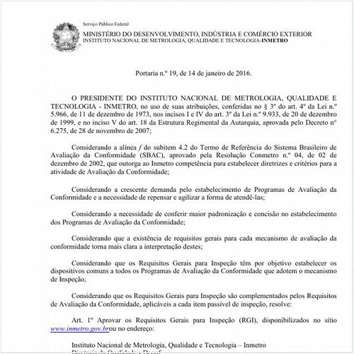 Portaria INMETRO/MDIC 19:2016 - Situação: Revogado
