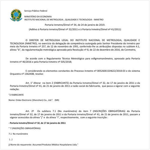 Portaria DIMEL/INMETRO 34:2019 - Situação: Em vigor