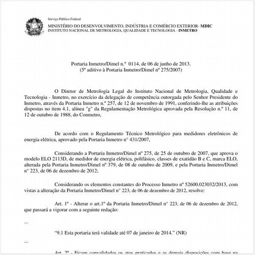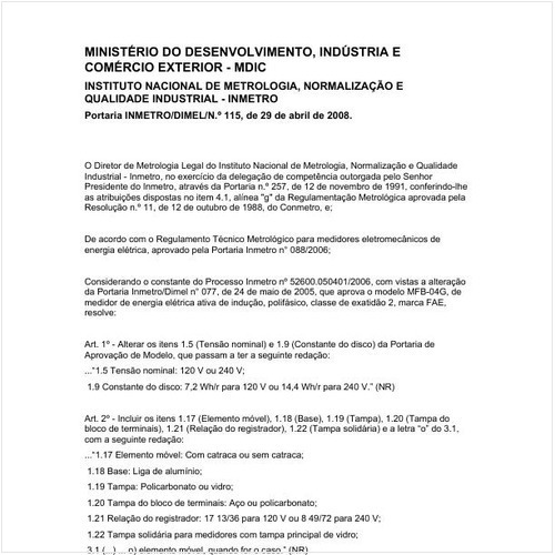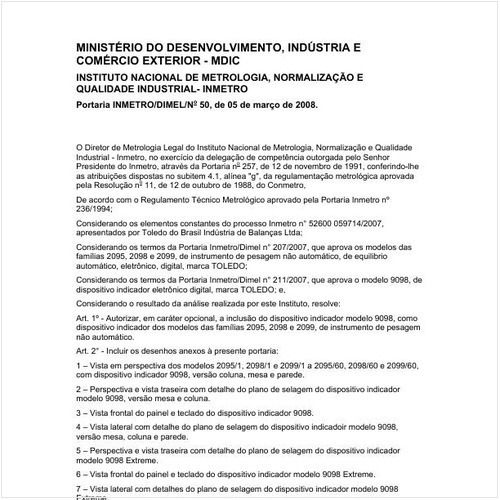 Portaria DIMEL/INMETRO 50:2008 - Situação: Em vigor