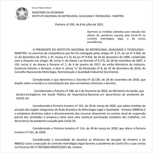 Portaria INMETRO/ME - 486:2021 - Situação: Em vigor
