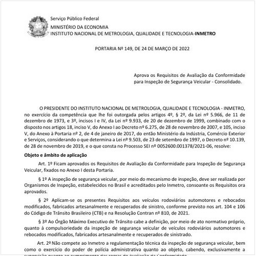 Portaria INMETRO/ME - 587:2022 - Situação: Em vigor