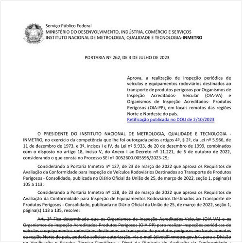 Portaria INMETRO/MDIC 262:2023 - Situação: Em vigor