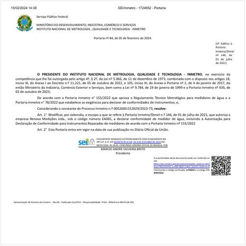 Portaria DIMEL/INMETRO 84:2024 - Situação: Em vigor