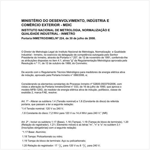 Portaria DIMEL/INMETRO 224:2008 - Situação: Em vigor