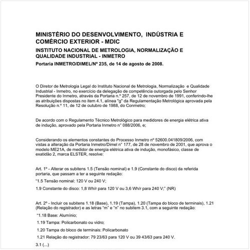 Portaria DIMEL/INMETRO 235:2008 - Situação: Em vigor