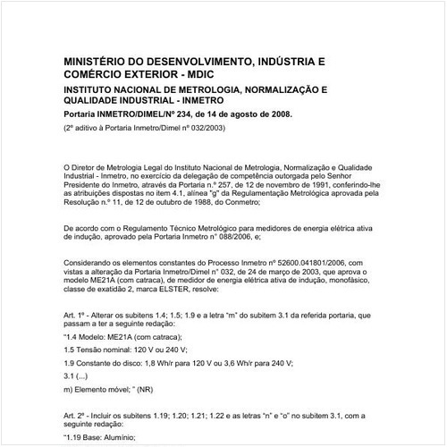 Portaria DIMEL/INMETRO 234:2008 - Situação: Em vigor