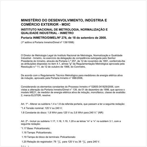 Portaria DIMEL/INMETRO 276:2008 - Situação: Em vigor