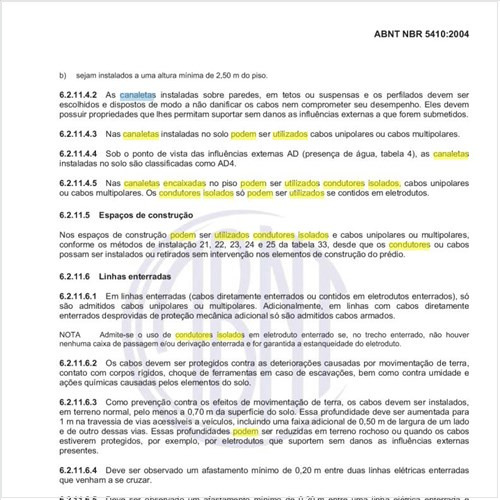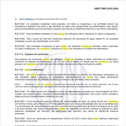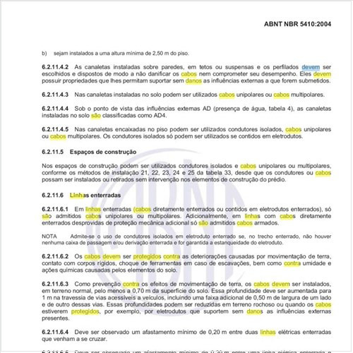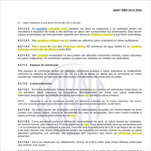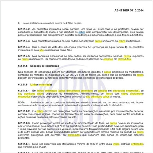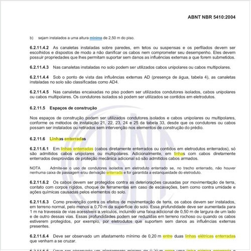 Quais tipos de cabos são admitidos em linhas enterradas (cabos diretamente enterrados ou contidos em eletrodutos enterrados)?
