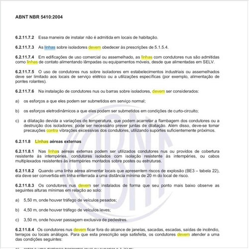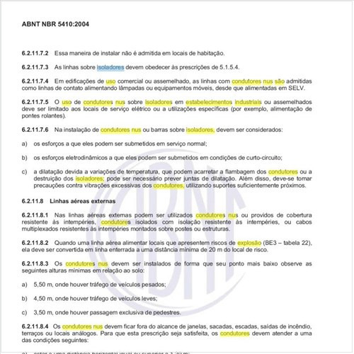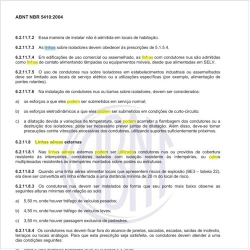 As linhas sobre isoladores são admissíveis em locais de habitação?