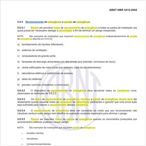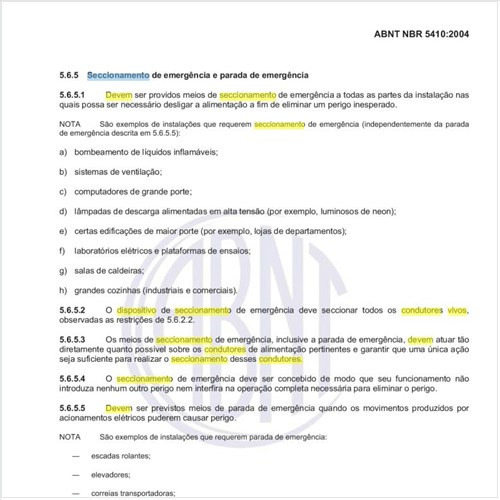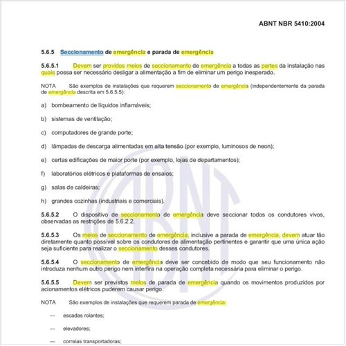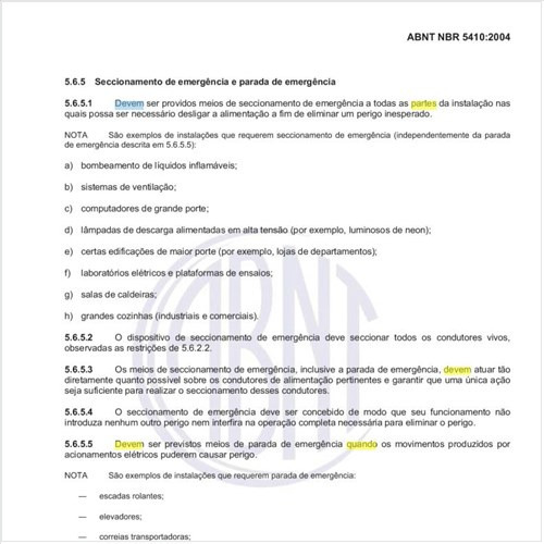 Em quais situações devem ser providos meios de seccionamento de emergência a determinadas partes da instalação?