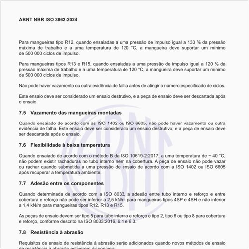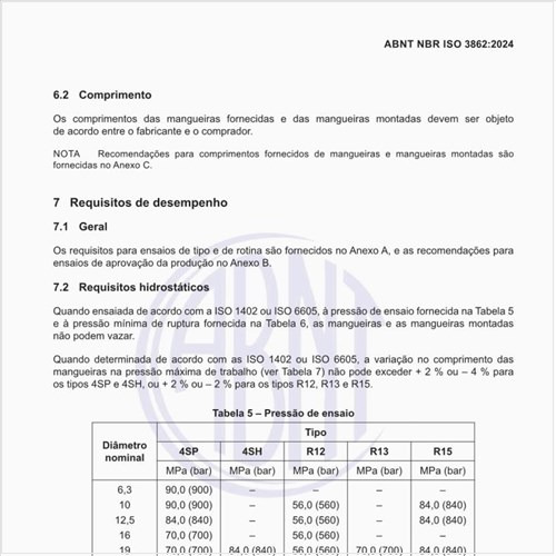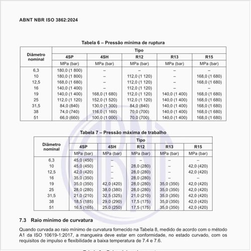 Quais são os requisitos hidrostáticos das mangueiras?