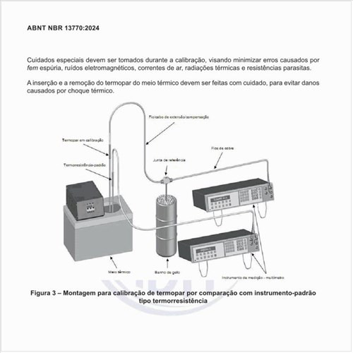 Como deve ser feita a montagem para calibração de termopar por comparação com instrumento-padrão tipo termorresistência?