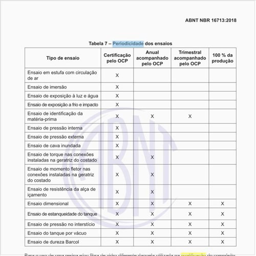 Quais são os ensaios de qualificação para tanque primário rotomoldado?
