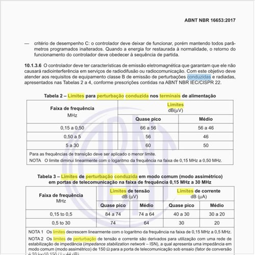 Quais os limites para perturbação conduzida nos terminais de alimentação?