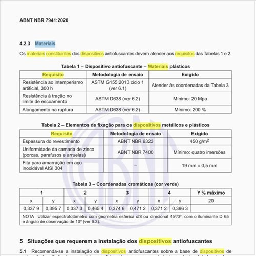 Quais são os requisitos dos materiais constituintes dos dispositivos antiofuscantes?